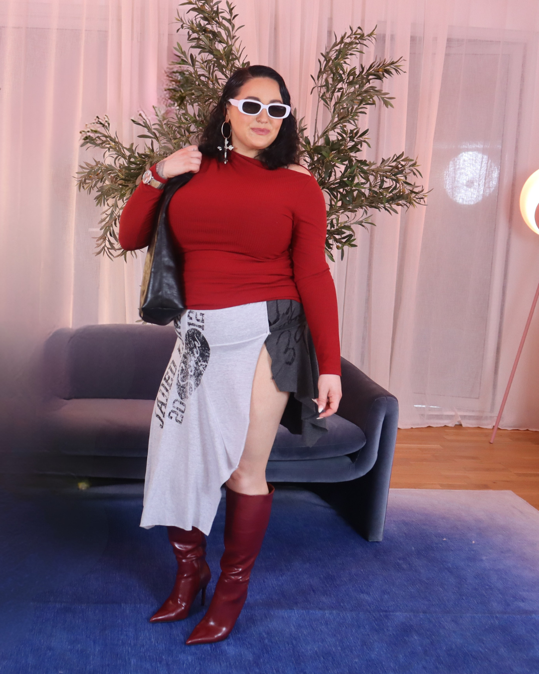 We selected looks that celebrated her curves, featured intentional structure, and helped her reconnect with her vibrant, expressive energy — not by hiding her body, but by honouring it. Emmy was so in love with one of the final looks that she literally left the studio wearing it.